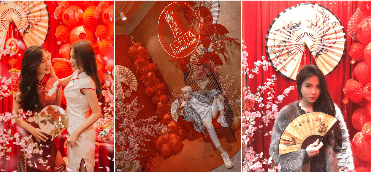 Lofita là một quán cà phê không còn quá xa lạ với những bạn trẻ thích không gian đẹp, nhiều góc chụp hình cùng phong cách nhẹ nhàng. Tầng 2 của quán được trang trí không gian Tết, tuy góc chụp khiêm tốn, đủ cho 1-2 người chụp nhưng nơi này được bài trí vừa mắt, hợp cho nhiều concept. Giá đồ uống ở đây khoảng hơn 50.000 đồng/người, vừa túi tiền của các bạn trẻ. Bạn cũng không cần mất thêm phí khi check-in với không gian Tết được bày biện sẵn của quán.